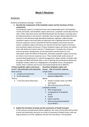 Block 5 (Haematology and Oncology) ANU Medical School. These are summaries of all subjects (including anatomy, physiology, pathology, immunology, histology, genetics, pharmacology) presented in the form of answers to all learning outcomes. Presented with useful tables, diagrams and mnemonics with key words highlighted. These summaries have been compiled from lectures and textbooks.