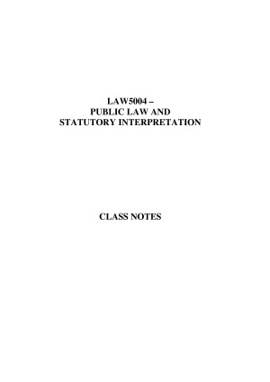 Detailed and clearly structured notes for Public Law and Statutory Interpretation, including diagrams for tricky topics, comprehensive facts of each case and key principles that need to be used in the exam. Topics include: identifying ambiguities, text/purpose/context structure, presumptions, rules and extrinsic materials.