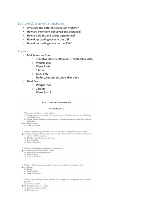 Through these notes, I achieved a mark of 90. Extremely well priced for what you're getting. I am selling my notes for FINA3307 Trading in Securities Market from Semester 2, 2016. These notes summarise ALL lecture slides and their corresponding textbook chapters and also ALL important content and examples from textbooks and lectures that will come up in exams, tests and assignments. Complete from Week 1 to Week 13. One of the most comprehensive notes you'll find. These notes summarises each topic to DETAIL so that minimal guidance from the textbook is required, but still in an easy to follow format (all notes are written in detailed dot points, with easy to follow diagrams/tables, rather than lengthy and hard to follow paragraphs). It incapsulates all important materials from lectures and the textbook into one easy to follow, and easy to read document. So basically, ALL you need to know for the unit to achieve a HD in one document.