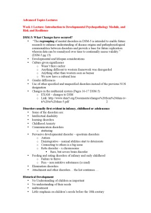 These notes include detailed summaries of the lectures, tutorials and readings for Developmental Psychopathology and Legal Psychology.