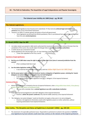 I used these notes to receive a High Distinction Mark (86) in Public Law in 2016. These notes have been comprehensively put together from the reading guide, sorted into each week. They contain theorist critiques of public law theories and case summaries of every case included in the reading guide. My notes are 182 pages (so very detailed!) and are all COLOUR CODED and NEATLY ORGANISED into different subsections, tables and headings. They also have MINI-PRACTISE QUESTIONS, DIAGRAMS and PICTURES integrated into the notes, with a scaffold for answering exam-like questions, to help achieve the best possible mark. I hope these notes will be as useful to you as they were for me in Public Law. Having notes COLOUR CODED and NEATLY ORGANISED was a real asset in a time pressured exam.