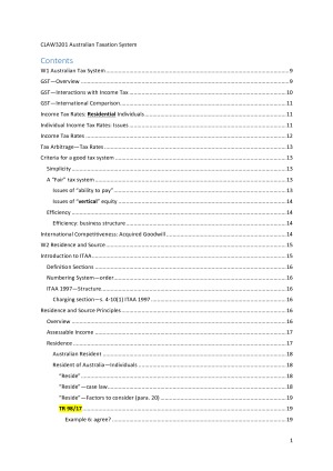 This note include all the relevant content summaries, legislations and cases that you will need during the exams. It is also user-friendly because it categorized similar topics together thus you can look up them by using the menu and make references quickly.