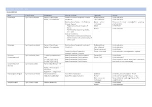 End of semester 2 revision tables for ANAT102. Includes joints of the upper limb - hand and wrist, elbow + radioulnar, shoulder; muscles of the hand, Thenar eminence, hypothenar eminence, forearm, shoulder, elbow, pectoral girdle; nerve supply of the upper limb - brachial plexus, nerve courses, upper limb myotomes and dermatomes; vertebrae characteristics, joints, ligaments and movements of the vertebral column, joints of the cervical spine, joints and muscles of the thoracic cage, respiratory muscles, muscles moving the trunk, muscle groups of the back (erector spinae, Transversospinalis, Unisegmental, muscles of the neck and head, functional anatomy of the vertebral column, skull, muscles of mastification and facial expression, cranial nerves, swallowing stages.
