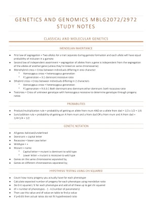 MBLG2072/2972 Genetics and Genomics Study Notes