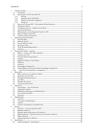 Succession Law is a great subject, however the 3 hour seminar structure means a lot of information is received very quickly, with very few notes or readings to assist with exam prep. The 78 pages of notes cover the entire course in detail. They include Statute extracts, and case summaries for all key areas of learning. They are spaced and edited in an easy to read and understand format, including a well organised contents page and highlighting for key provisions. I created these notes by using summaries, my notetaking skills (approved UTS notetaker and exam scribe) as well as personal study and thorough reading of the Succession Law prescribed textbook.