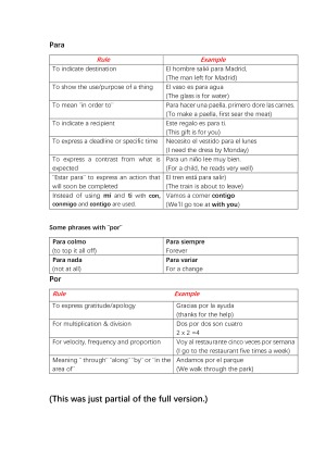 All the grammers taught in Spanish2 were organized clearly in this notes. You can review this subject by looking though this notes, also good for oral, there are lots of examples in the notes with translation in English. Kind Regards :)