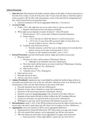 Notes used as a checklist/structure for the 2016 Property A exam. I received an HD for the subject. The notes don't include Topic 1 (Nature of Property Rights) or Topic 2 as these were not examinable in 2016.