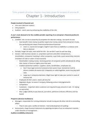 HD Notes summarised from lectures and textbook (Financial Accounting: An Integrated Approach 6th Ed textbook). Lots of examples are included as well to make the course easier to understand :)