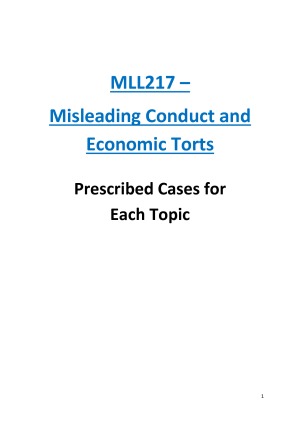 A comprehensive summary of the prescribed cases for each topic in the MLL217 course. The resources used to compile these notes included: - Textbook - Study Guide - Lecture Notes - Tutorial Notes They are ready to print and perfect for the MLL217 assignment and exam.