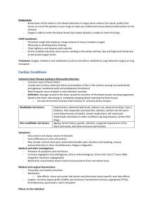 My personal notes for the unit including all content assessed in Test 1. Topics include: Fractures and bone disease Hip and Knee surgery Diabetes Chronic Obstructive Pulmonary Disease Cardiac Conditions Spinal cord injury