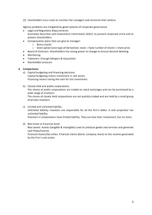 Notes summaries points from lecture notes, tutor's notes and textbook Read this thoroughly will enable you to do well in the subject