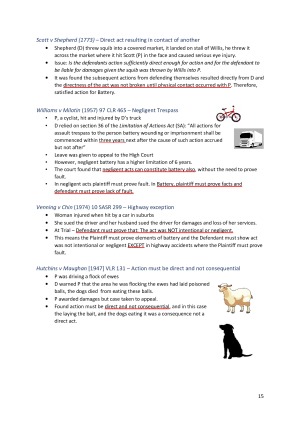 Stuck on the exam or assignment prep - Comprehensive notes built with the final examination in mind. Created for the RMIT Juris Doctor program, however, should assist with any Tort Law based unit due to how I laid them out. How its set up: The contents page is excellent and provides a quick way to source the case/legislation with relevant legal terms are next to each case to assist with referencing. Each case as important points highlighted. All important legislation sections copied from the relevant legislation. All sections set out to assist with completing an IRAC question. Example: Battery section starts with definition and rule and then moves to the cases and how they applied. Why it is valuable: I ensured to do self-research of cases not covered in the course work, such as remedies case law, which is required in every exam answer and Privacy cases which are likely to be a subject in any Torts course as it is relevant and contentious in Australian common law. Everything is in order to try to make answering the question as quick and easy as possible.