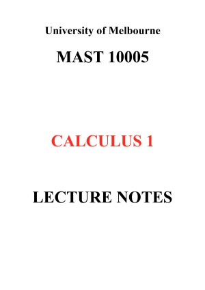 This is a comprehensive compilation of information from MAST10005 lectures, the textbook, tutorials, practicals, workshops, problem booklets and other useful sources I found online to aid my study. Each section (particularly the harder concepts) is supported by easy to read and understand dot points, diagrams, pictures and thorough example exam-style questions. Includes all summarised formulae required to know for each topic. I received an H1 (92) for this subject, so I can promise you these are trustworthy notes worth using to boost your mark! :)