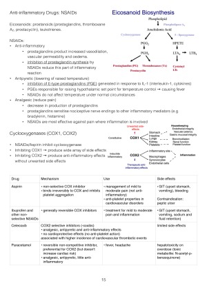 Complete drug table of all drugs learnt in all topics along with mechanism of action, use, side effects and contraindications. For peptic ulcers, asthma etc, there are also rationales for treatment. Also included: some specific topics that were asked in the final exam and clarification of pH and drug absorption.