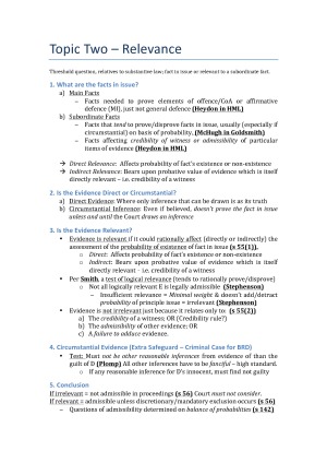 Complete exam notes for evidence law, covering all examinable topics in a clear and easy to follow manner. Topics Include: Introduction Relevance Competence and Compellability Relevance Privilege Examination of Witnesses Character and Credit Right to Silence Tendency and Coincidence Hearsay Admissions Illegally Obtained Evidence Opinion Evidence