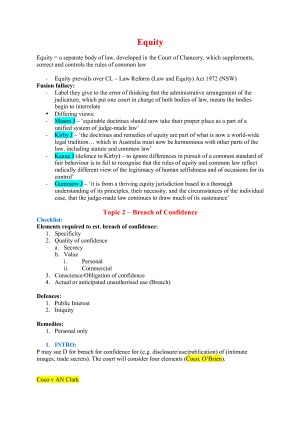 Comprehensive notes which set out all topics required in the equity exam. Notes are straight-forward and set out element by element, to make learning the content as easy as possible. Includes all relevant cases.