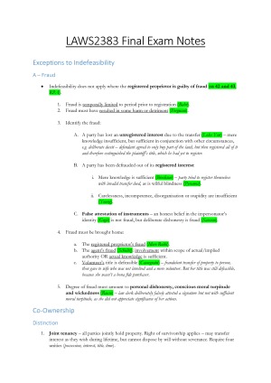 LAWS2383: Land Law - Final Exam Revision Notes (Closed Book)