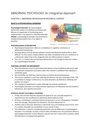 PSYC1023: Abnormal Psychology TEXTBOOK Notes