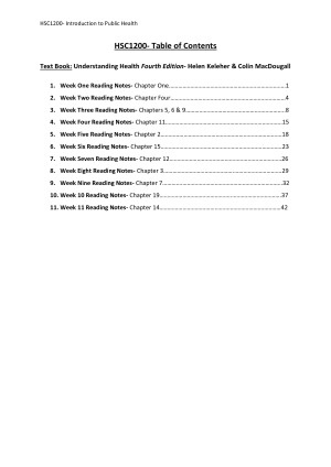 Weekly Textbook Readings Notes- Understanding Health Fourth Edition (Keleher and MacDougall)