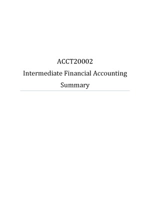 These IFA2 notes includes everything you need to know, including theories, journal entries and tables you need to understand how to complete. These notes are organised by each topic covered in this subject. I would recommend each topic of these notes individually, so that in the exam you can determine the topics required for each question, and know how to answer different questions. Finally, there are several pages about exam revision notes that you need to remember and understand for successful exam.