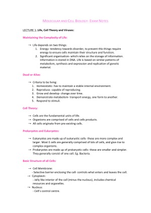 Detailed notes consisting of information presented in both the lectures and textbooks. Pictures and diagrams included.