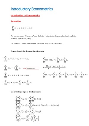 HIGH DISTINCTION ECON241 Introductory Econometrics Study Notes