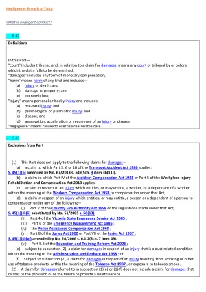 Summary of each tort. Including each cases and legislation that are relevant to each tort.