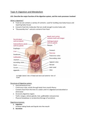 These are my HBS1HBA final exam notes for semester 1, 2017. These are notes I've taken from the lecture recordings, revision lectures, the e textbook and through some of my own research. Diagrams and images used mostly come from the e textbook: Tortora, G. J., Derrickson, B. H., Burkett, B., Dye D., Cooke J., Diversi T., McKean M., Mellifont R., Samalia L and Peoples G, (2016). Principles of Anatomy & Physiology: 1st Australia Pacific Edition. John Wiley and Sons. ISBN : 9780730329619 As well as some diagrams used or created by the lecturers at La Trobe University in the lecture videos. I hope these are helpful, this was my first time studying anatomy and physiology so I tried to make these notes as detailed as possible by using all the different resources provided to us. This document contains notes on mostly all LOs for each topic, and is set out in order of topic and the corresponding LOs for that particular topic. Topics: Intro to the Human Body Cell Structure and Function Movement of Molecules Nervous System Homeostasis and Endocrine System The Heart The Cardiovascular System Respiratory System Digestion and Metabolism Renal System Reproductive System Acid Base Good luck :)