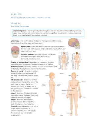 HUBS1105 Musculoskeletal Anatomy Lecture and Lab Notes