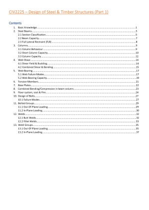 CIV2225 Notes: Part 1 of 2 Steel design course notes with worked examples for use in open book exam CIV2225 Notes: Part 2 of 2 Timber design course notes with worked examples for use in open book exam