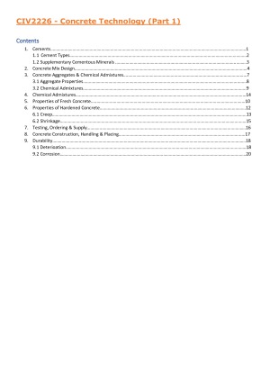CIV2226 Notes: Part 1 of 3 Concrete technology summary notes CIV2226 Notes: Part 2 of 3 Concrete design summary with worked solutions. CIV2226 Notes: Part 3 of 3 Masonry technology & design summary with worked solutions.