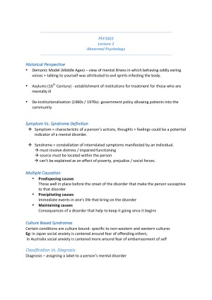 Summary notes for PSY1022 Weeks 1-12 These notes are very well organised and are very clear, detailed and concise - making them great notes to study from for the end of year exam and weekly quiz. Received a distinction for the unit.