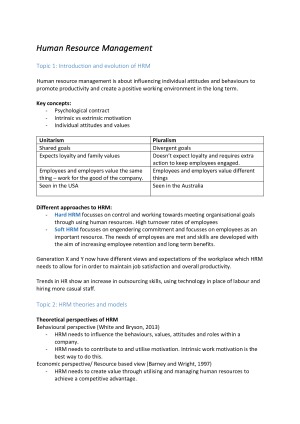 Distinction MGF2661 Human Resource Management Notes Clear and well laid out notes. Presented in a comprehensive and effective style that is easy to read and understand. Uses clear diagrams to communicate more difficult concepts easily. Also includes relevant examples that are essential to success in the subject.