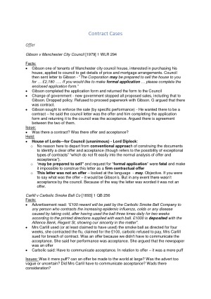 A summarised version of all the cases required for Contract A. These notes will save you a lot of time and are essential for the exam.
