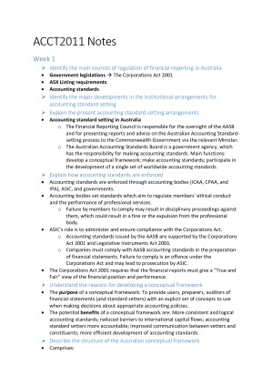 Subject notes for USYD ACCT2011
