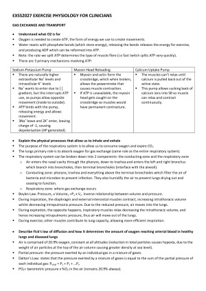 EXSS2027 Exercise Physiology for Clinicians Notes