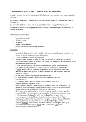 These notes contain the 6 topics relevant for Property Law II and include: 1) Co-Ownership 2) Old System Title (OST) And Priority Rules 3) Torrens Regime 4) Mortgagors 5) Leases 6) Easements and Covenants