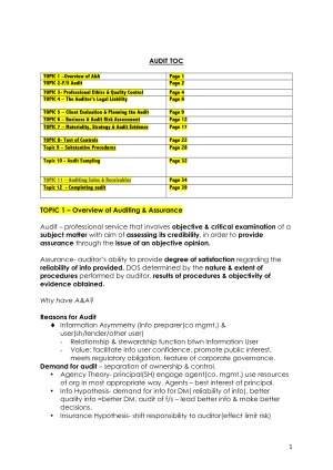 Subject notes for UniMelb AUDITING AND INSURANCE