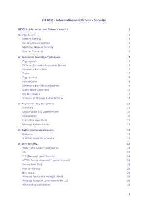 Summary of the the content in FIT3031 Information and Network Security in bullet point notes, diagrams and external resources.