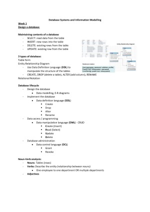 Detailed INFO90002 notes from semester 1 2017 No need to type your own notes!! This subject is all about doing practice and understanding the theory. I just saved your time by 1/3! Summary is filled with definition, pictures from lecture slides and examples of SQL code. Useful to use throughout the semester and as a final revision for exam.