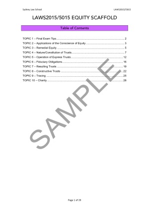 There's no denying that Equity is a difficult subject. However, with a clear structure and understanding of the key principles and nuances, you can do very well. These are scaffolds for the final exam – for your own use or as a basis for making your own scaffolds. Table of Contents page included. I have also uploaded very comprehensive Corporations notes (HD) and Real Property (D) Notes.