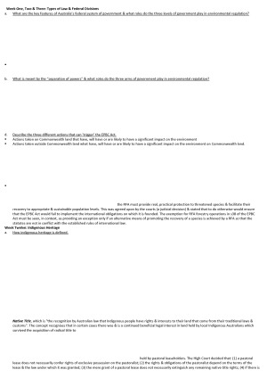 Week One, Two & Three: Types of Law & Federal Divisions Week 9: Pollution Week 10: Biodiversity Week Twelve: Indigenous Heritage