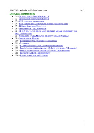 This is my lecture summary notes for IMMU3902(Adv), which also covers all of the IMMU3102 materials. ☞ Cover all 16 lectures ☞ Concise summary of lecture material arranged under uniquely colour-coded learning objectives ☞ PDF document with hyperlinked menu for easy access to lectures ☞ Colour-coded diagrams and flowcharts ☞ Integration of extracurricular materials to help better understand lecture contents ☞ Essential knowledge only, no extra BS Sample is of lecture 1 & 2 ☞ Hyperlink removed in the sample, rest assured that in the full version it will be working!
