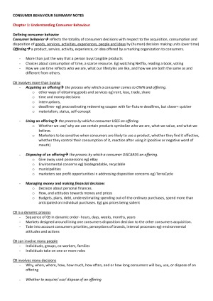 NO NEED FOR THE TEXTBOOK! All the study notes you need are here in these summaries (textbook and lecture). It is a perfect substitute for the required textbook Wayne D. Hoyer, Deborah J. MacInnis, Rik Pieters, Eugene Chan, Gavin Northey (2017) Consumer Behavior, 1st Asia-Pacific Edition, Cengage Learning.(ISBN: 9780170362016) Also great for general knowledge about business/ business workplace. * Is a great study aid * Will shorten study preparation and time * Will get you a D or HD