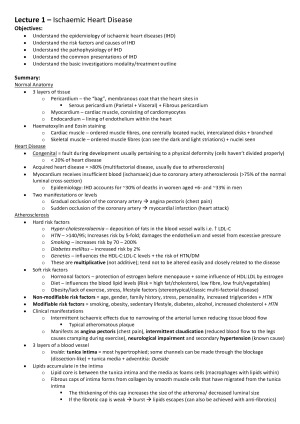 HUMAN PATHOLOGY GOSPEL These notes are ~1 double sided page per lecture, without compromising on the required information (thus some are longer)! I hadn't done first semester HUP when I took on this unit and it was a challenge, but I got an 83 in the end. The good news for you is that you have these notes to see you through it all!! All the thinking, sorting, analysing, processing and lecture attending has been done for you. The major points in each lecture are their own headings, with dot points of relevant information below. I have used lecture notes, lecturer's elaborations prescribed text books and additional readings to compile these notes. Topics include: - Ischaemic Heart Disease - Stroke - Diabetic Wound Healing - Renal Pathology - Diabetic Nephropathy - Diabetic Retinopathy - Inflammatory Dermatoses - Cancer Dermatoses - Obstructive Lung Disease - Restrictive Lung Disease - GIT Cancer - Inflammatory Bowel Disease - Leukaemia - Lymphoid Malignancies - Thalassaemia - Iron Metabolism - Generating blood cells from somatic cells - Stem cells in Haematology - Neuropathy + Neurodevelopmental Disorders - Neurotrauma - Epilepsy - Neurodegeneration - Multiple Sclerosis