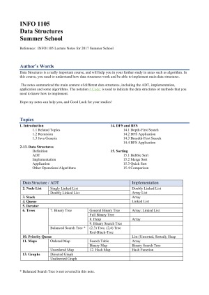 My notes cover the main content of different data structures, including the ADT, implementation, application and some algorithms. I got HD for INFO1105. Hope my notes can help you!