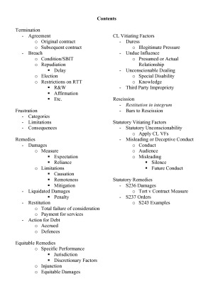 Extremely comprehensive yet concise coverage of the entire Contract B course. Includes suggested answer structure, prompt sentences and succinct case law.