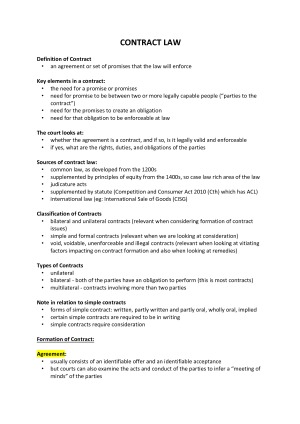 First half of the semester's notes, so only the contract information. Contains all of the powerpoint information/modules written and organised by the weekly topic.