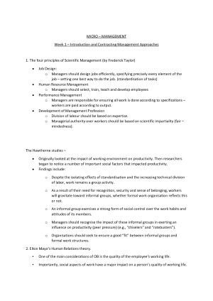 These notes include a full summary of all topics in the subject excluding Motivation, Organisational Change and Organisational Ethics, as those topics were not included in my exam. Notes are structured for easy memorization. Notes was made based on questions that often emerge in the exams.