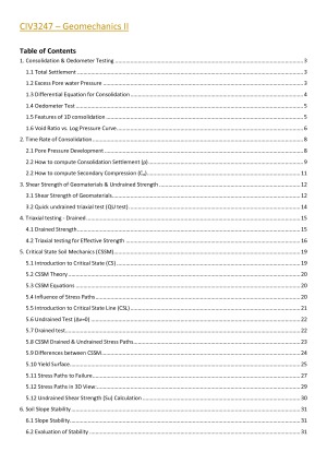 CIV3247 Notes: Geomechanics II course notes with worked examples and CIV2242 (Geomechanics I) useful information